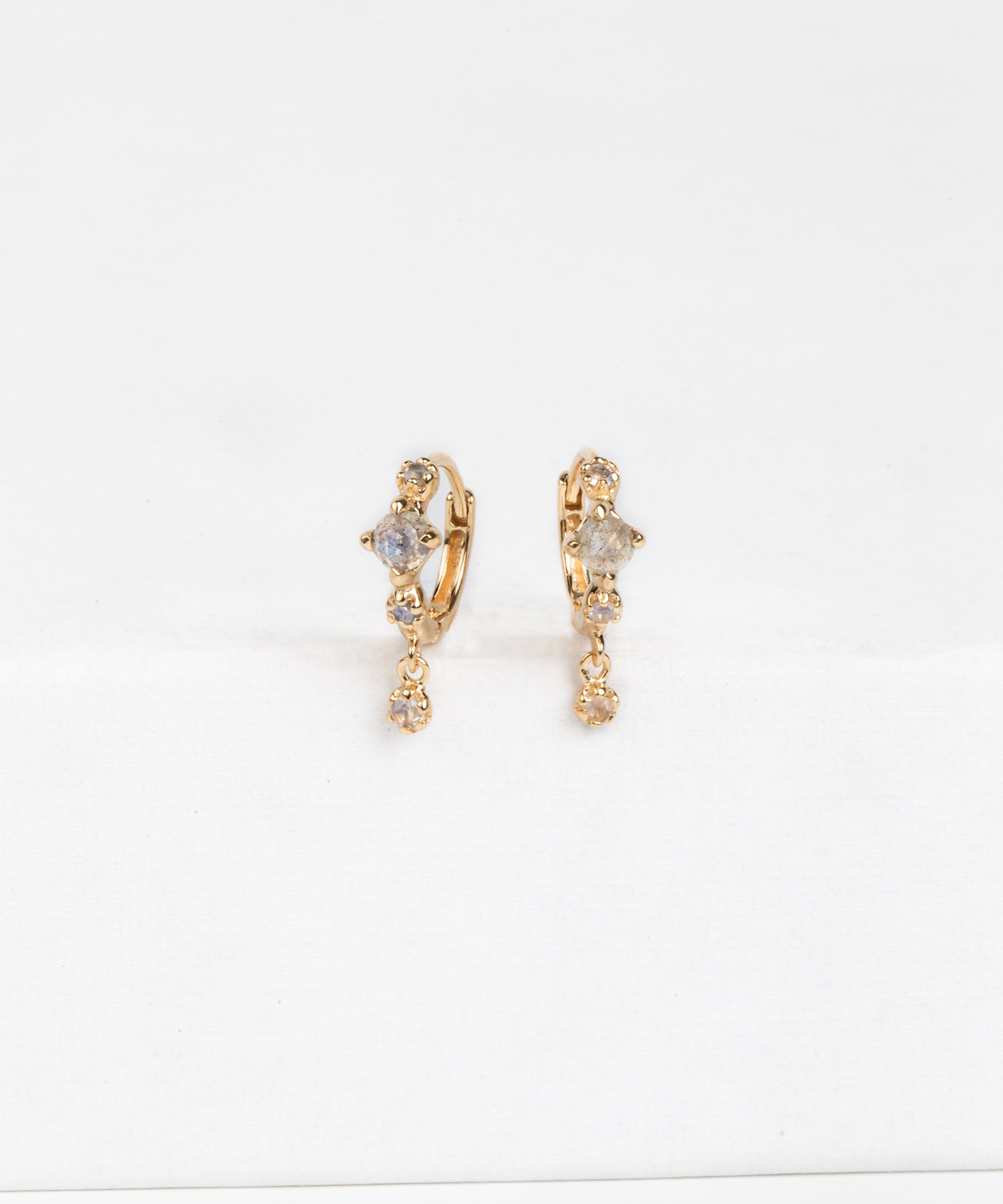 This is not regular stone hoop earring you have known! This is very unique colored hoop earring that comes in natural stone. Sophisticated dangle drop earring with Moonstone & Labradorite. It is a gorgeous daily earring alone or added to your ear stack.