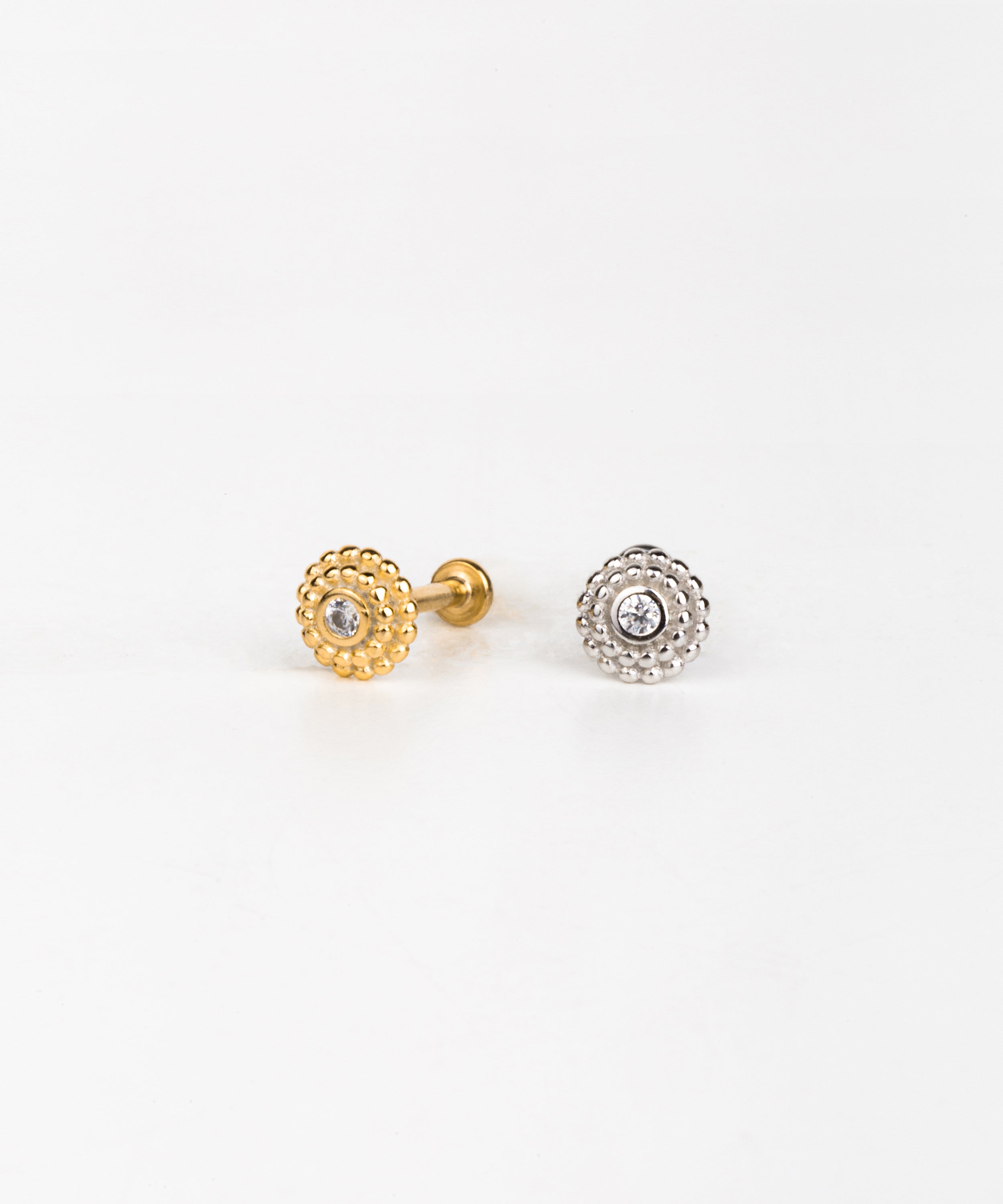 Discover the stunning design of  threadless push pin type stud from Minimore Jewels. Made with a combination of sterling silver front jewel head and 316L surgical steel backing, these push pin studs offer both elegance and durability. Add this to your look while enjoying the all-day comfort of a threadless flat back. This style will be shower-safe and perfect for everyday wear without taking it off.